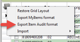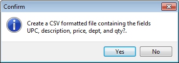 B. Click on 'Export Item Audit Format' and the Confirm box will appear. Please note the confirm box says you are creating a 'CSV' file. This is called a Comma Separated Value file and is readable by Excel and all other spreadsheet programs.