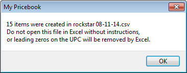 G: Click 'OK" this will take you back to the Pricebook screen.