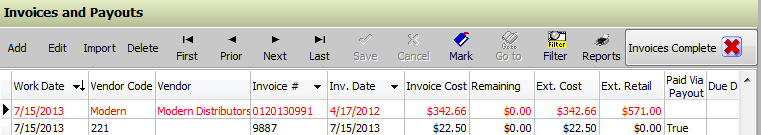 The imported Invoices will show in red. You will need to edit them and finalize the Distributions. Go to Finalize/Edit Invoices how-to for instruction.